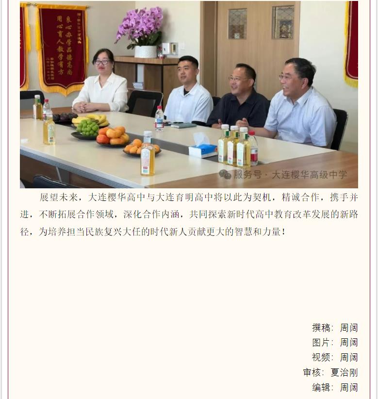 深化交流 共谋发展——大连樱华高中与大连育明高中携手共建友好学校
